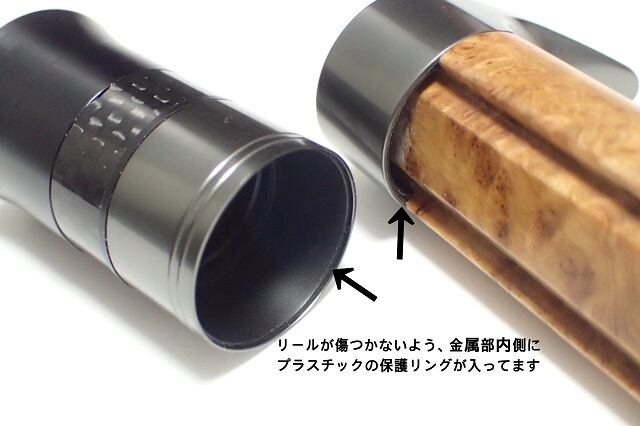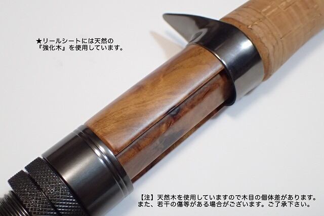 *リールシートには天然の強化木を使用しています。天然木なので木目等に個体差、また若干の寸法・重量誤差や傷等がある場合がございます。ご了承ください。